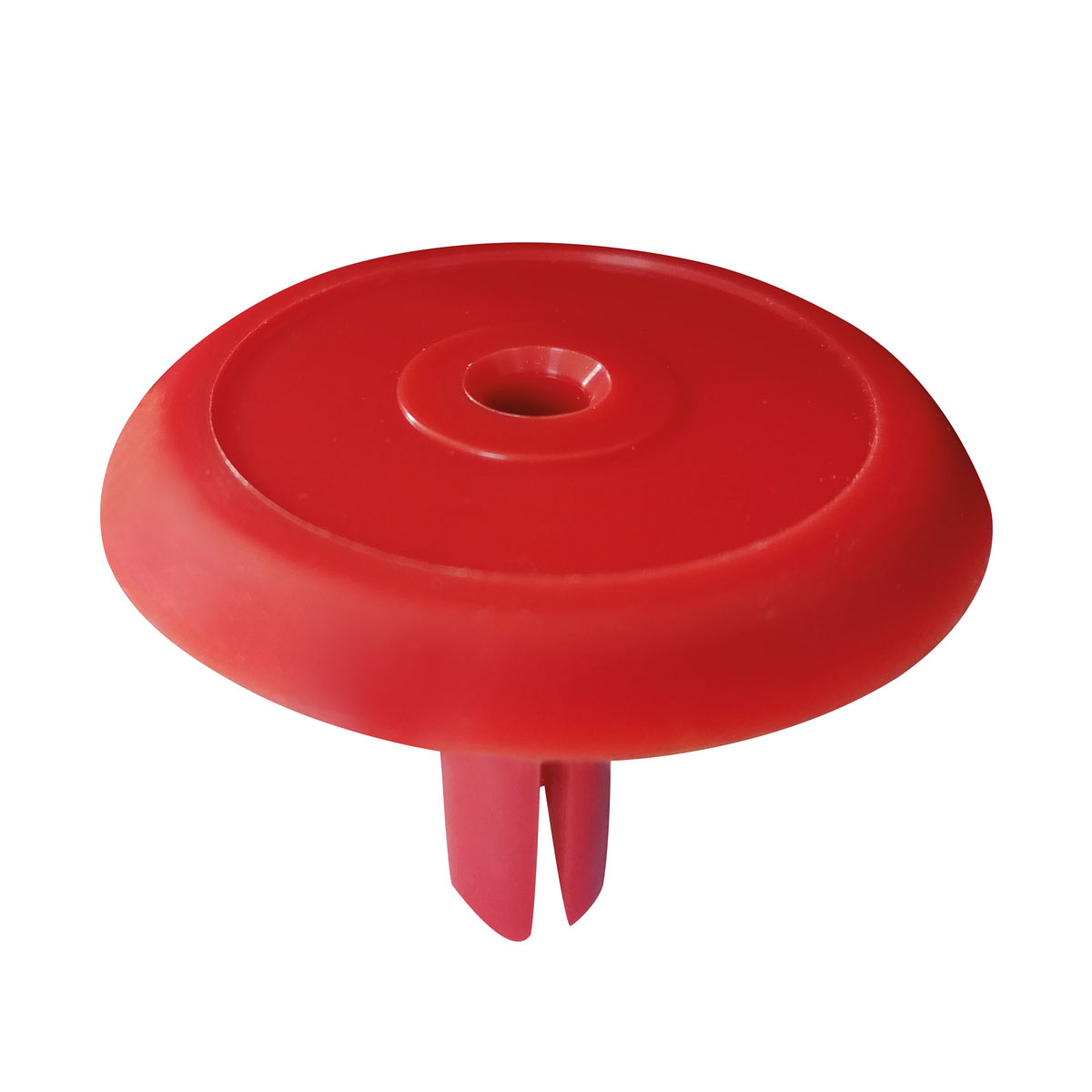 Die Abschlussplatten werden auf die Eisenrohre gesteckt und mithilfe eines Spreizkeils durch die Mittelöffnung im Rohr fixiert, so dass diese nur noch mit einem Spezialwerkzeug enfernt werden können. Abschlussplatten aus Polyamid zur Kennzeichnung von Eisenvermessungsrohre, 1/2", Kopf-Ø 60 mm. ohne Aufschrift, Farbe rot. Aus besonders wetterbeständigem, sowie abriebfestem und schlagzähem Polyamid. Das Einschlagwerkzeug Art.Nr. 105 099 (nicht im Lieferumfang enthalten) kann zum Versenken der Spreizstifte verwendet werden.