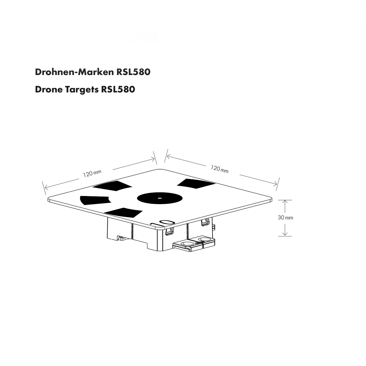Die Drohnen-Zielmarken RSL580-20 eignen sich hervorragend für Drohnen vieler Hersteller und können in Verbindung mit dem Fixpunkt RSFP-X80 am gleichen Punkt wieder und wieder aufgesetzt werden.