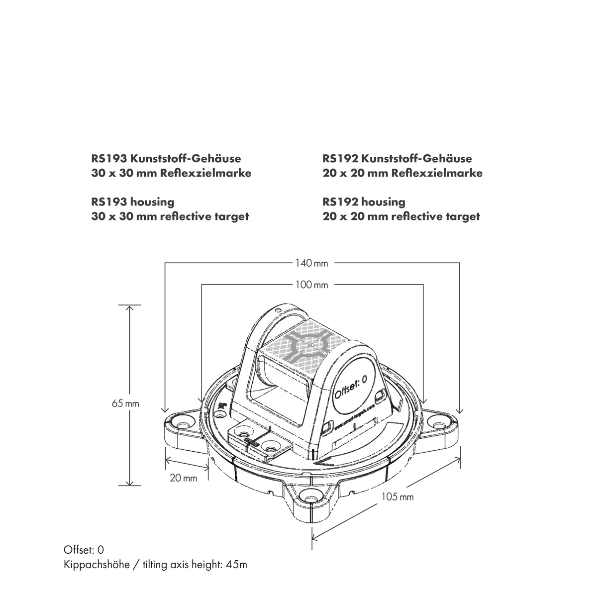 Die Reflexzielmarken RS193M sind in einem Radius von 360° drehbar und können immer genau auf das Messinstrument ausgerichtet werden, da sie auch gekippt werden können. Damit wird die Nutzung des gleichen Vermessungspunktes aus allen Richtungen ermöglicht. Die magnetische Marke kann einfach an Stahlkonstruktionen montiert werden.