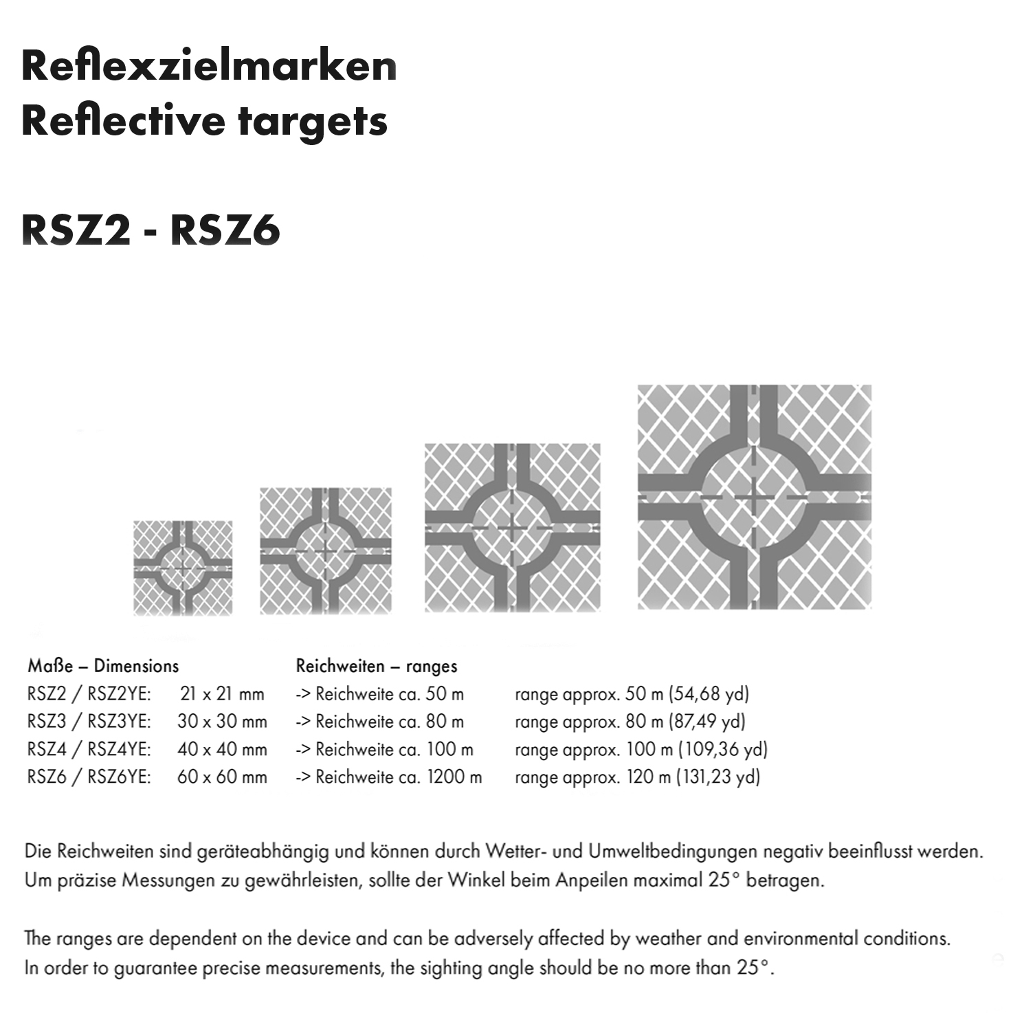 Produktinformationen "Reflexzielmarken - selbstklebend - RSZ6 60 x 60 mm auf Folie Zielweite ca. 120 m"