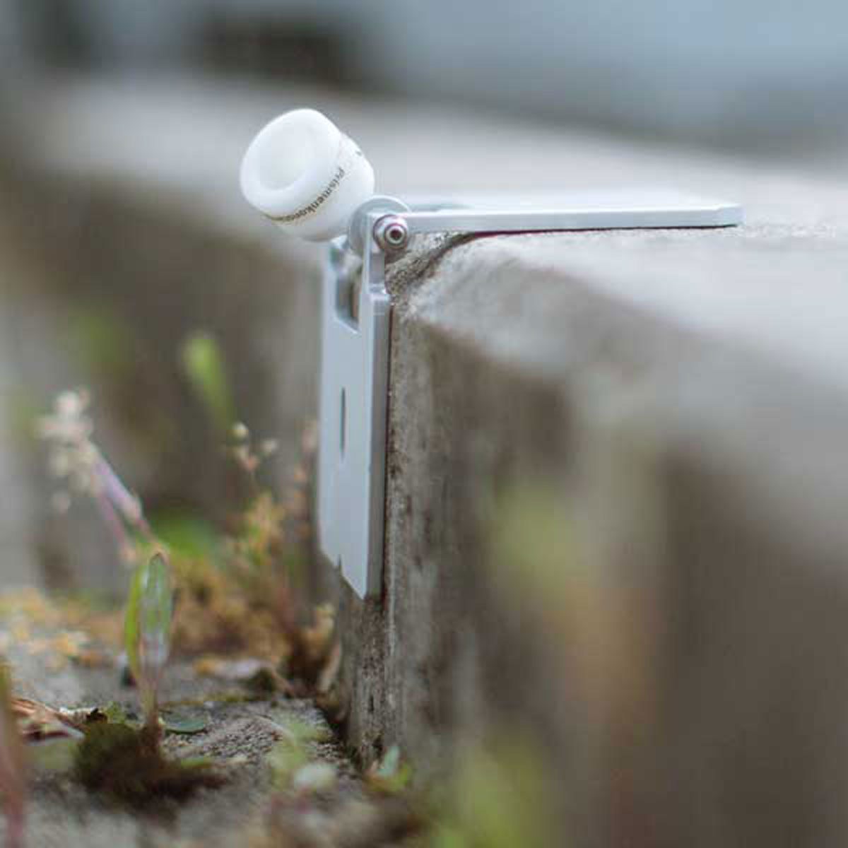 Flexibler Winkelhalter für Präzisionsprisma (SBF-Flex-Winkel) bestehend aus zwei planen Aluminiumplatten, die über ein Scharniergelenk verbunden sind. Der Winkelhalter kann an allen Bauteilen mit einer Fase ab 20 mm angehalten werden und passt sich hierbei dem Winkel des Bauteils an. Die Scharnierachse liegt exakt in der Schnittlinie der beiden Auflageflächen. In der Mitte sitzt der Träger für das Präzisions-Prisma PP 17.5, welches über ein M4-Gewinde eingeschraubt wird. Das Prisma kann im Träger, unabhängig vom Flex-Winkel, in alle Richtungen gedreht und über einen Bereich von 180° auf den Tachymeter ausgerichtet werden. Der Neigungswiderstand ist einstellbar.
