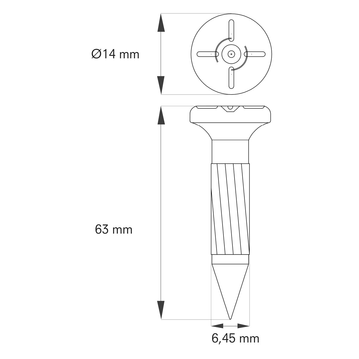 • flacher Kopf mit Ø 14 mm