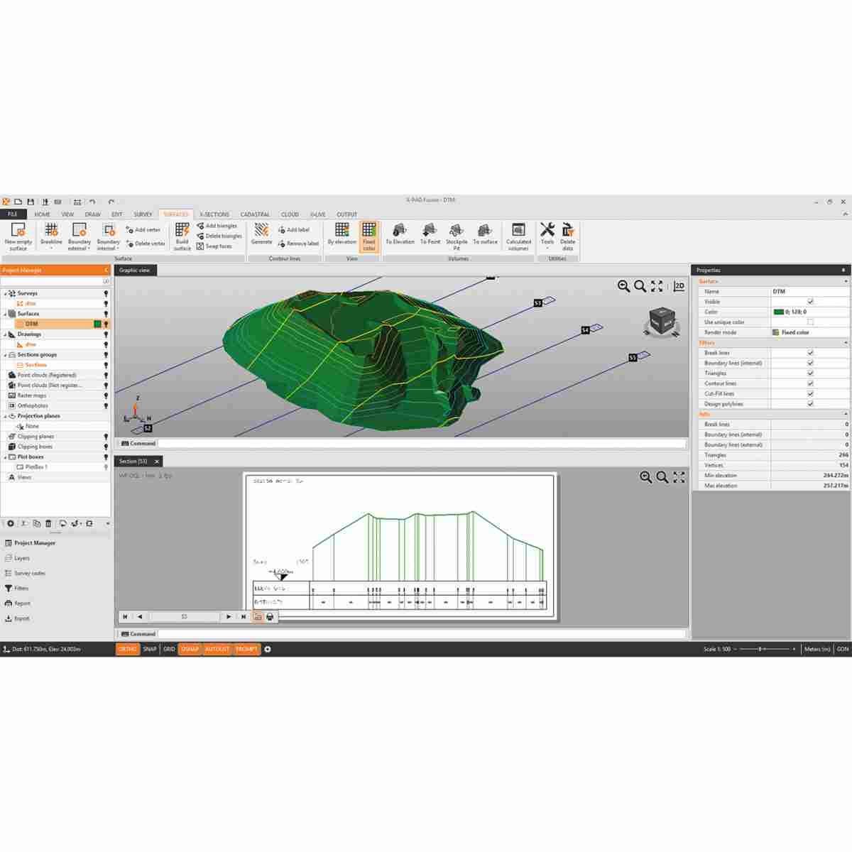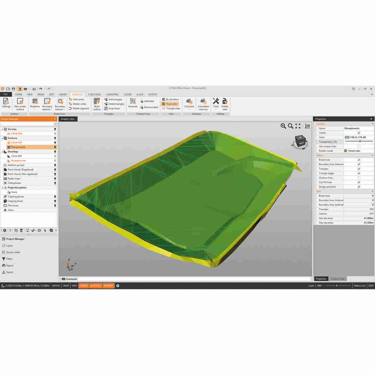 Ein Highlight des X-PAD Office Fusion TOPO-Moduls stellt die Möglichkeit dar, aus topografischen Punkten Punktwolken zu erstellen. Außerdem lassen sich 3D-Modelle, Höhenlinien, Querschnitte und Volumen berechnen. Leistungsstarke Tools und Optionen ermöglichen es Ihnen außerdem, die endgültigen Zeichnungen anzupassen, um die bestmöglichen Ergebnisse für Ihre Kunden zu erzielen.