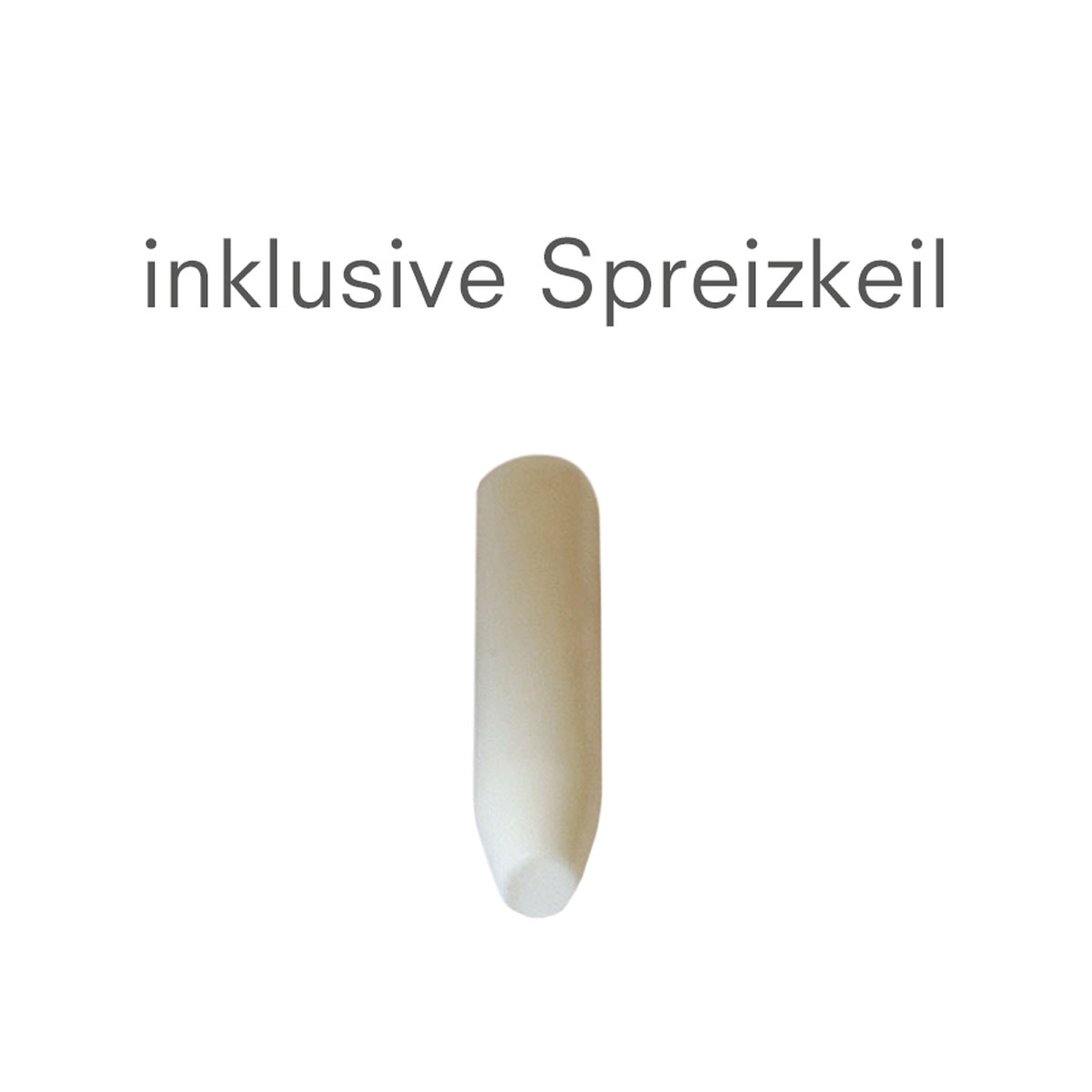 Die Abschlussplatten werden auf die Eisenrohre gesteckt und mithilfe eines Spreizkeils (im Lieferumfang enthalten) durch die Mittelöffnung im Rohr fixiert, so dass diese nur noch mit einem Spezialwerkzeug enfernt werden können.