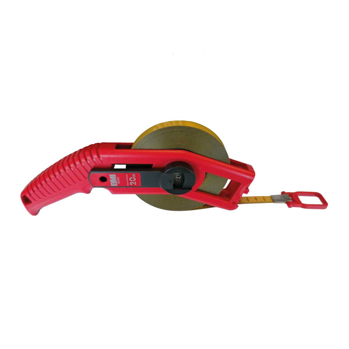 aus hochwertigem polyamidbeschichtetem Federbandstahl, 13 mm breit, Oberfläche mit einseitig aufgedruckter und eingebrannter Maßeinteilung, roter Metervorgabe und cm-Teilung.
