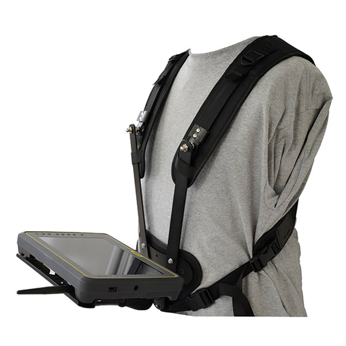 Mit diesem Tragegestell für Tablets haben Sie Ihren Tablet ständig parat und haben trotzdem die Hände frei! Mit den neuen SECO-Tragegestellen für Tablet-PCs halten Ihre Tablets im Außendienst bequem so, dass Sie beide Hände frei haben, um das Tablet zu bedienen und einen GNSS- oder Prismenstab zu halten.Der zweiseitige Schultergurt ist ideal für ganztägiges Arbeiten, die Last wird gleichmäßig auf 2 Schultern verteilt.Gewicht 885 g ohne Halterung und Tablet. Die Schnittstellen vom PC sind frei zugänglich. Die Tablethalterung (nicht im Lieferumfang enthalten) kann über ein Kugelgelenk in die gewünschte Position gebracht werden und bleibt auch in dieser Stellung. Bitte bestellen Sie die passende Tablethalterung, die am Tragegestell befestigt wird, extra!