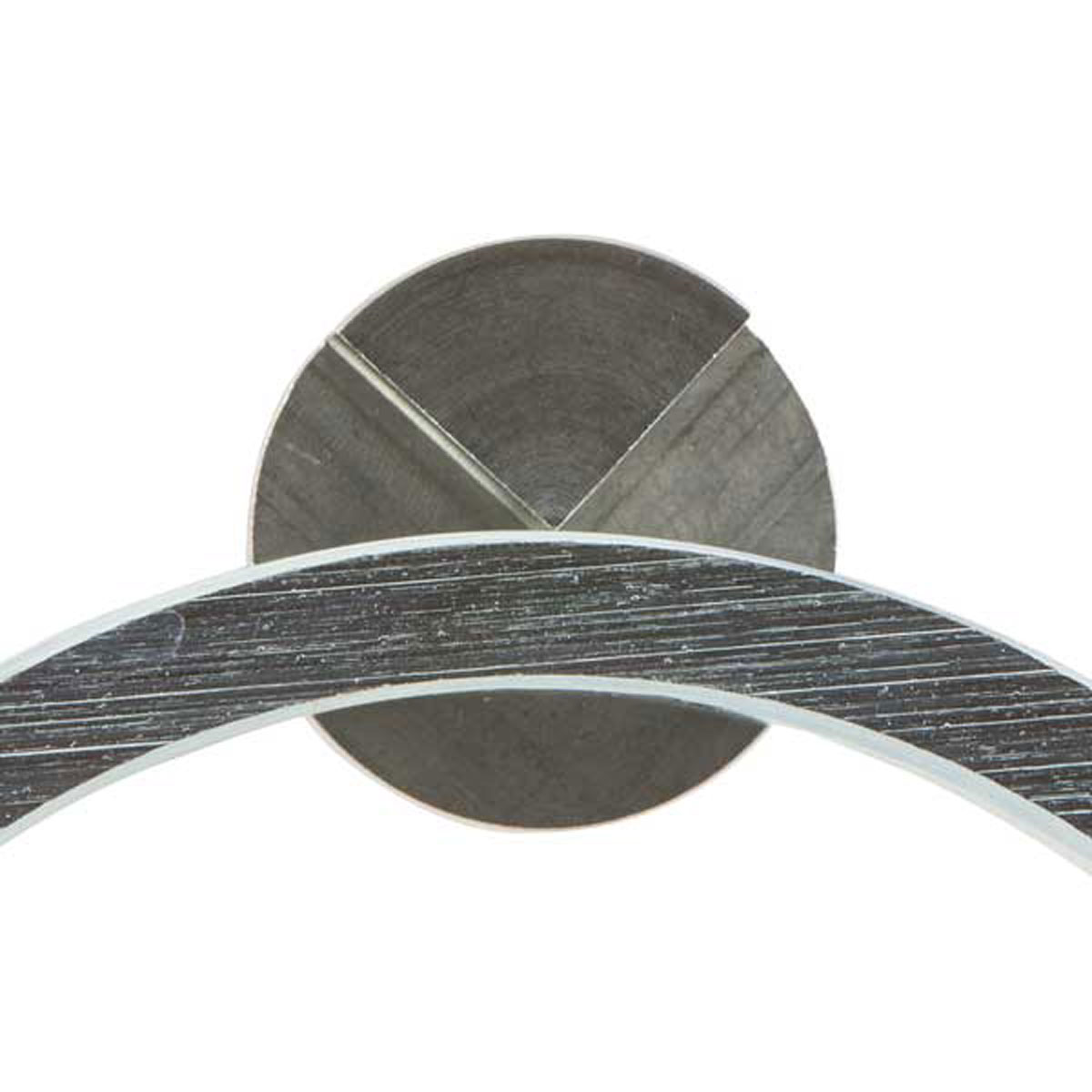 Mit der Basis "Kontur" lassen sich neben geraden auch kurvenförmige Kanten erfassen. Da die Spitze des Quadranten exakt in der Basismitte liegt, kann sie in einem beliebigen Winkel an die Kante gehalten werden. Außer dem Höhenoffset HO von 25 mm muss kein weiteres Parallelmaß berücksichtigt werden.