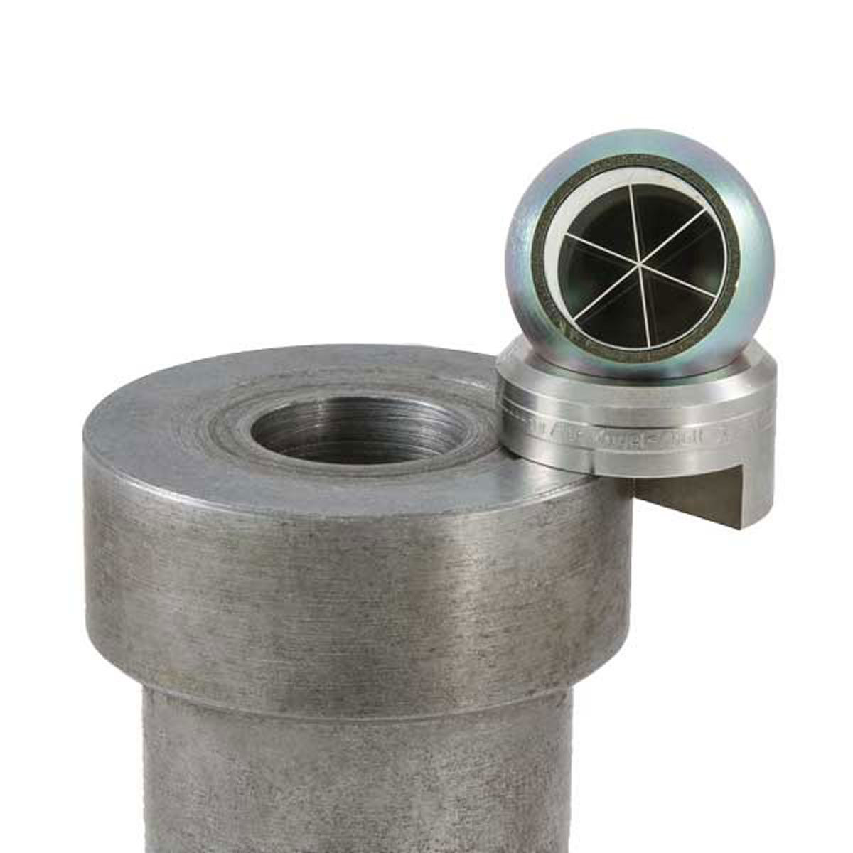 Die Basis wird auf gesetzt und mit der Spitze (= Basismitte) an den Objektpunkt gehalten. Nach Ausrichten des Kugelprismas auf das Tachymeter kann die Messung erfolgen. Durch den in die Basis eingebauten Dauermagneten haftet das Kugelprisma zuverlässig auf der Basis. Zudem haftet bei magnetischen Oberflächen die Basis von selbst am Messobjekt und muss dann ebenfalls während der Messung nicht von Hand gehalten werden. Der Messpunkt befindet sich exakt 25 mm über dem Objektpunkt.