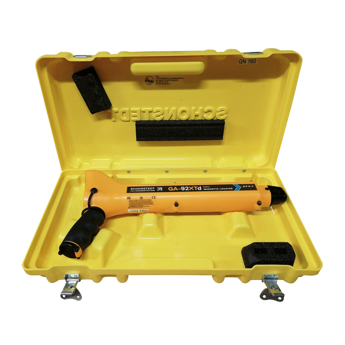 Das GA-92XTd Magnetsuchgerät von Schonstedt nimmt Magnetfelder wahr. Damit lassen sich alle ferromagnetische Objekte aufspüren, die ein eigenes Magnetfeld ausprägen. Insbesondere Objekte wie Hydranten, Magnetmarkierungen, Schachtdeckel, Schieberstangen, Vermessungsmarken und -rohre, Wassermeter lassen sich damit finden – auch wenn sie durch Erde, Straßenbeläge, Schnee oder Wasser verdeckt sind.