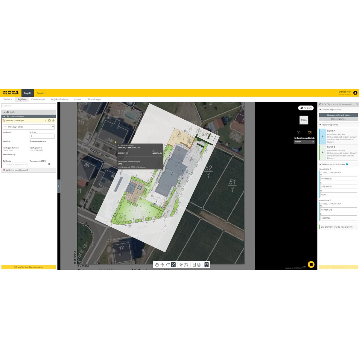 - Überlagerung von Kataster- und Ausführungsplänen (2D-Pläne als PDF)