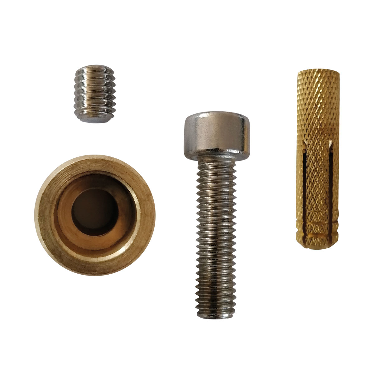 1x Messingkopf mit Innensechskantschraube und Messing-Spreizdübel
