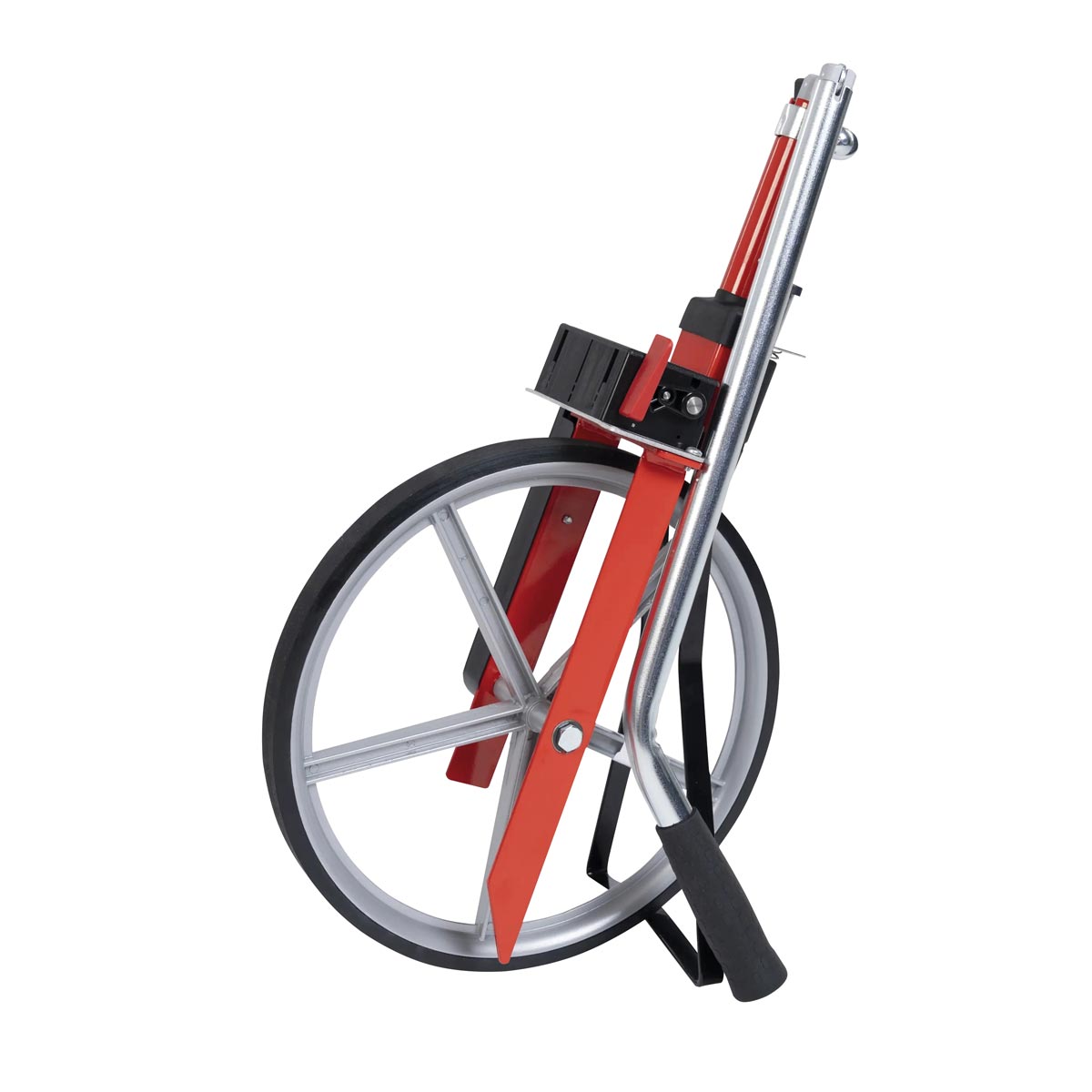 Das Speichenrad ist mit einem Gewicht von 3,4 kg leichter als ein Vollrad. Der Laufraddurchmesser beträgt 318,5 mm, was einem Radumfang von 1 m entspricht. Der Messbereich des Zählwerks liegt bei bis zu 9 999,99 m, und die fein abgestufte Anzeige von 0,01 m sorgt für präzise Ergebnisse.