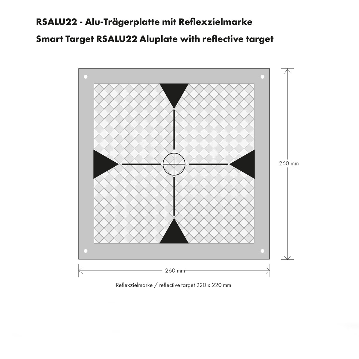 Diese Plaketten werden immer dann eingesetzt, wenn man Messungen auf größere Distanzen durchführen muss. Die Reflexziel-Tafeln RSALU22 mit Aluminium-Platte 260 x 260 mm und Reflexzielmarke 220 x 220 mm eignet sich für Messungen bis 500 m.