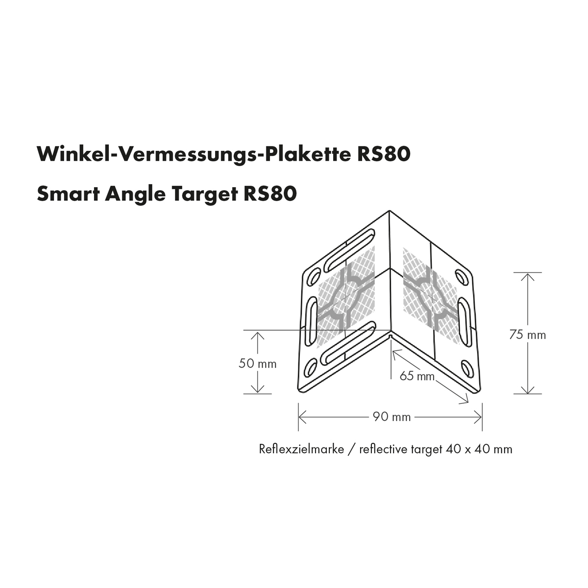 Die Plaketten RS80 werden „dachförmig” montiert. Für die Beobachtung von Fassaden und Objekten eignen sich diese Plaketten sehr gut als Ecklösung. Müssen Höhen und Achsen von außen nach innen und umgekehrt übertragen werden, montiert man die Plaketten z. B. an der Fensterleibung. Sie können dann buchstäblich um die Ecke messen.