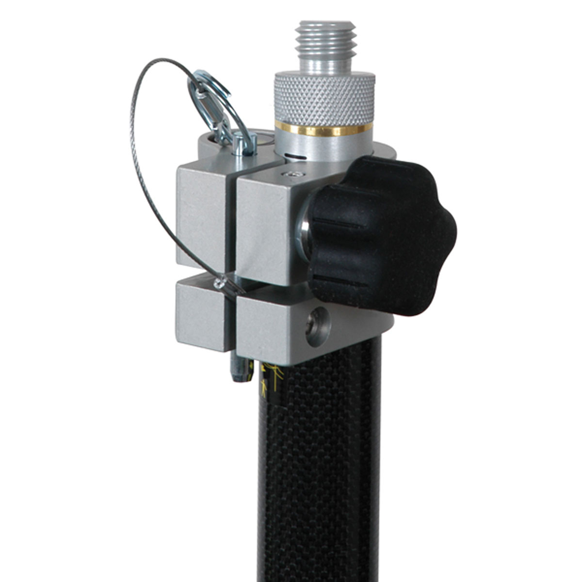 Der Carbon-/Alustab eignet sich für Robotik-Anwendungen und ist mit einem Adapter für Prismen mit 135 mm Kippachshöhe ausgestattet. Damit kann der Stab mit dem aktiven Prisma MultiTrack MT1000 von Trimble genutzt werden. Der Stab ist ausziehbar auf 2,6 m. Eingezogen hat dieser eine Länge von 1,52 m. An der Schraubklemmung befindet sich eine 40´ Libelle.