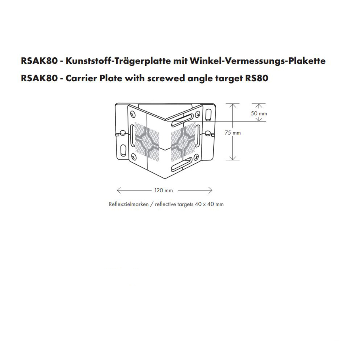 Produktinformationen "Trägerplatte mit Winkel und Reflexzielmarken RSAK80, rot, von Rothbucher Systeme"