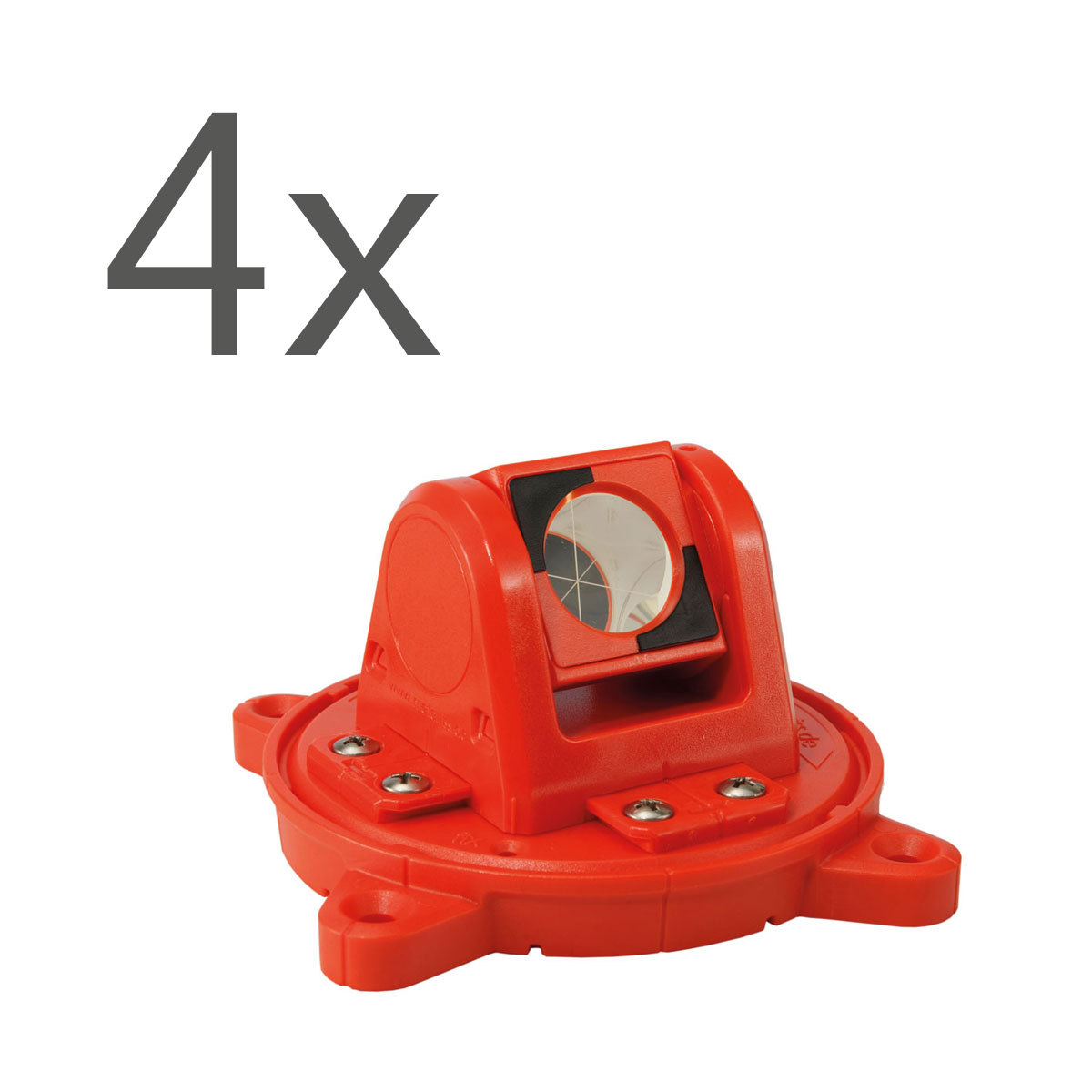 4 Prismen RSMP390M: Diese Prismen sind äußerst vielseitig einsetzbar. Sie lassen sich um 360 Grad am Fixpunkt ausrichten, so wird es möglich, fast überall äußerst präzise Vermessungen durchzuführen, da die Prismen immer exakt auf die Position der Totalstation ausgerichtet werden können.