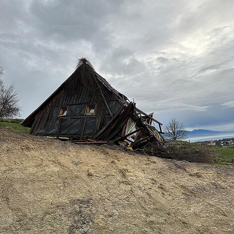 In der österreichischen Gemeinde Hörbranz in Vorarlberg ist seit Mitte April 2023 ein Hang in Bewegung. Dies führte bereits zur Zerstörung von mehreren Häusern. Ingenieure und Baufirmen sind im permanenten Einsatz.