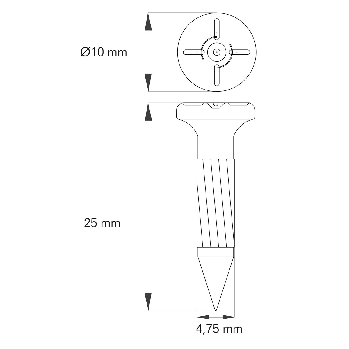 Stahlnagel PK 25 x 4 mm flacher Kopf Ø 9 mm mit Zentrierung
