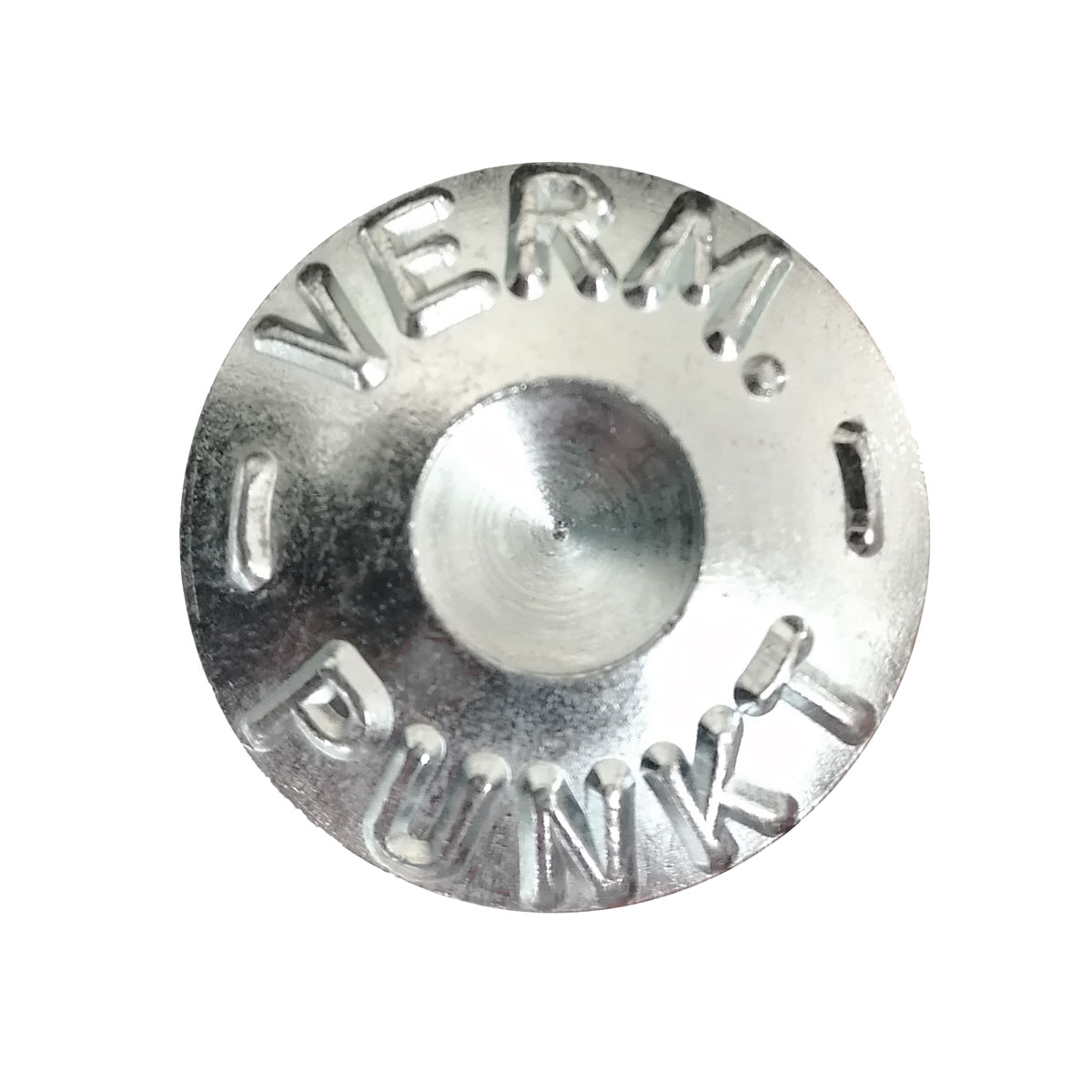 Unsere Vermessungsbolzen sind aus kaltgeformten und gehärtetem Spezialstahl. Sie sind in vielen verschiedenen Standartaufschriften lieferbar.